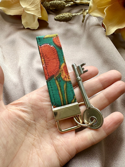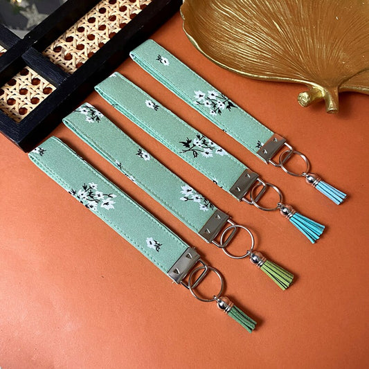 Green floral cotton keychain