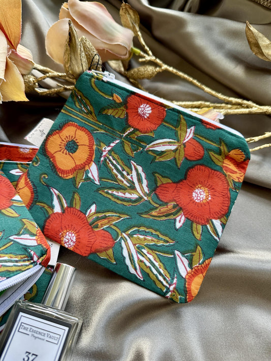 Green floral blockprint coin purse