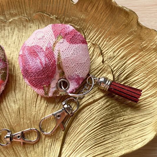 Pink floral padded keyring