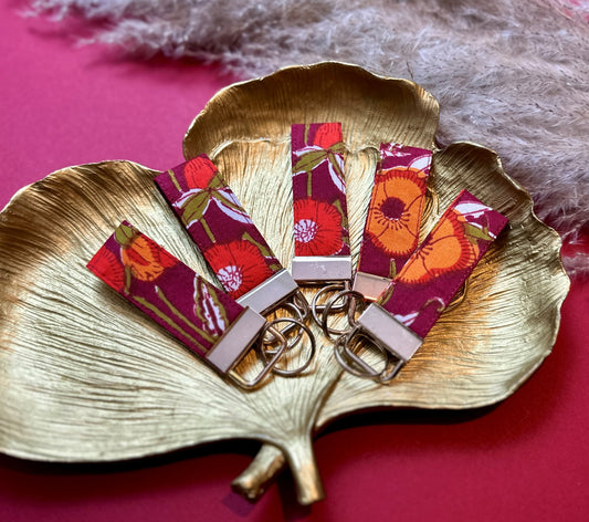 Small floral fabric keyring - burgundy/gold