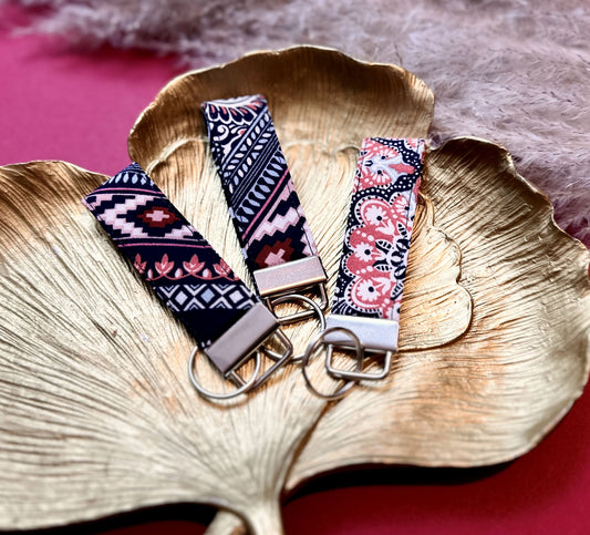 Small boho fabric keyring