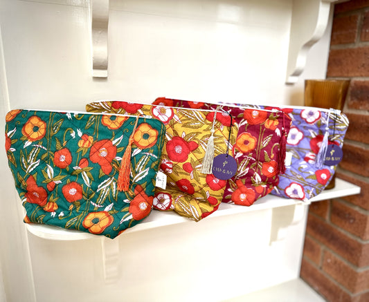 Quilted cotton floral makeup bags