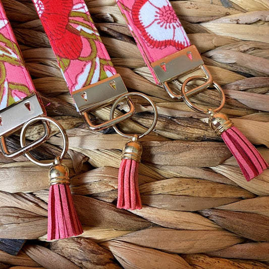 Pink floral cotton key chain wristlet