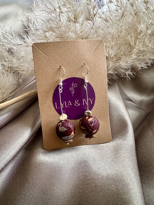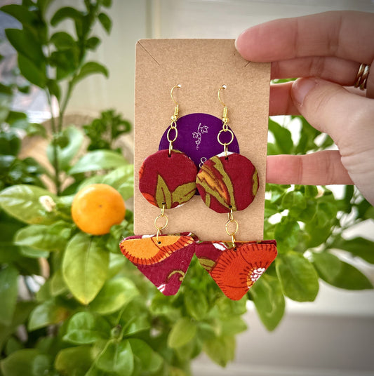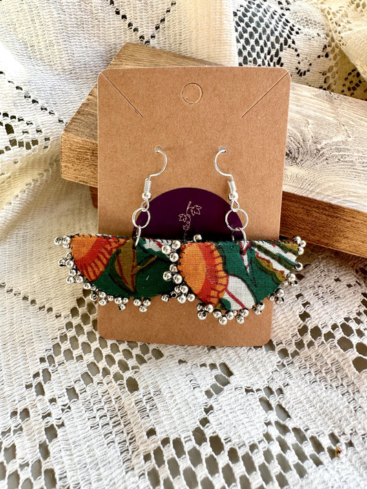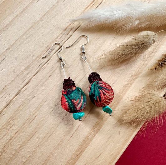 Jewellery made from left over fabric scraps. An eco friendly choice if you enjoy wearing jewellery but are concious of the enviromental impact.